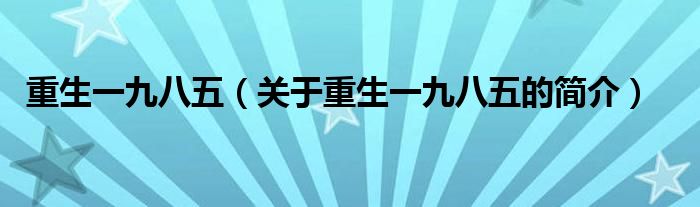 本文關于重生一九八五的簡介就講解完畢,希望對大家有所幫助。