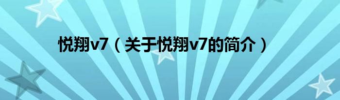 大家好,悅翔v7,關于悅翔v7的簡介很多人還不知道,現在讓我們一起來看看吧!