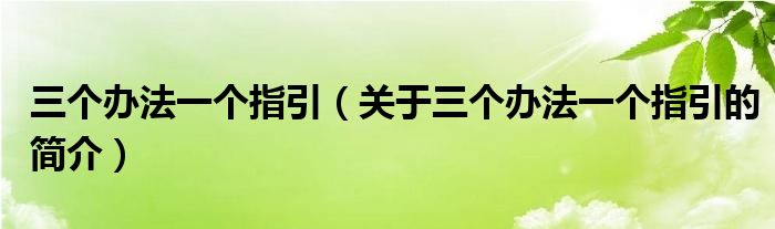 大家好,三個辦法一個指引,關于三個辦法一個指引的簡介很多人還不知道,現(xiàn)在讓我們一起來看看吧!