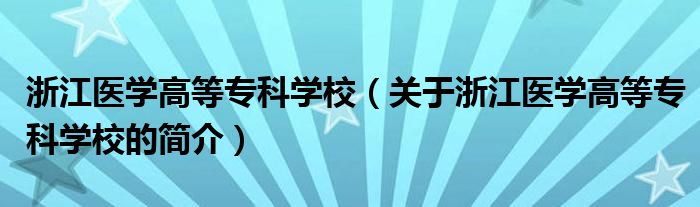 本文關于浙江醫學高等專科學校的簡介就講解完畢,希望對大家有所幫助。