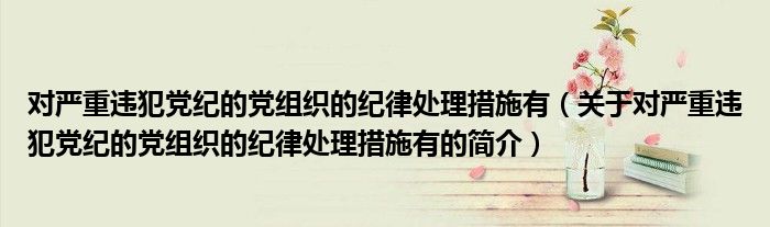 本文關于對嚴重違犯黨紀的黨組織的紀律處理措施有的簡介就講解完畢,希望對大家有所幫助。
