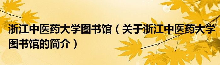 本文關于浙江中醫藥大學圖書館的簡介就講解完畢,希望對大家有所幫助。