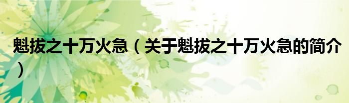 大家好,魁拔之十萬火急,關于魁拔之十萬火急的簡介很多人還不知道,現在讓我們一起來看看吧!
