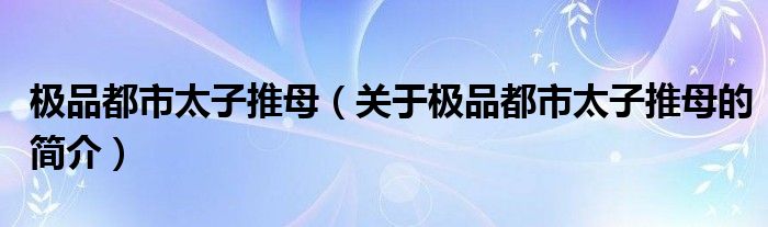 本文關于極品都市太子推母的簡介就講解完畢,希望對大家有所幫助。