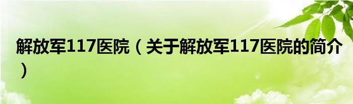 本文關(guān)于解放軍117醫(yī)院的簡(jiǎn)介就講解完畢,希望對(duì)大家有所幫助。