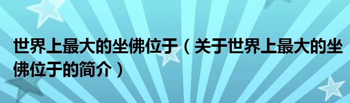 世界上最大的坐佛位于(關于世界上最大的坐佛位于的簡介)