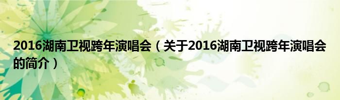 本文關(guān)于2016湖南衛(wèi)視跨年演唱會的簡介就講解完畢,希望對大家有所幫助。
