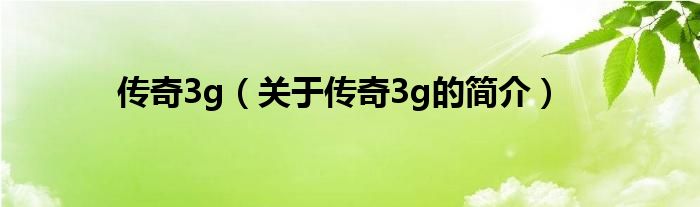 大家好,傳奇3g,關于傳奇3g的簡介很多人還不知道,現在讓我們一起來看看吧!