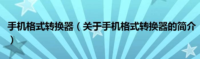 本文關于手機格式轉換器的簡介就講解完畢,希望對大家有所幫助。