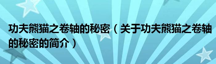本文關于功夫熊貓之卷軸的秘密的簡介就講解完畢,希望對大家有所幫助。