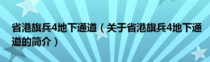 本文關于省港旗兵4地下通道的簡介就講解完畢,希望對大家有所幫助。