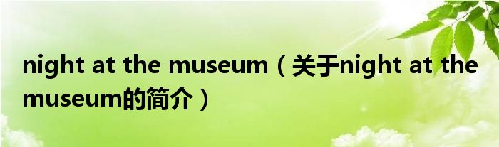 本文關于night at the museum的簡介就講解完畢,希望對大家有所幫助。