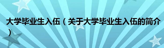 大家好,大學畢業生入伍,關于大學畢業生入伍的簡介很多人還不知道,現在讓我們一起來看看吧!