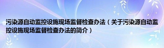 本文關于污染源自動監控設施現場監督檢查辦法的簡介就講解完畢,希望對大家有所幫助。