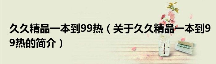 本文關于久久精品一本到99熱的簡介就講解完畢,希望對大家有所幫助。