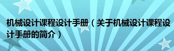 本文關于機械設計課程設計手冊的簡介就講解完畢,希望對大家有所幫助。