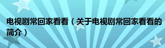 本文關(guān)于電視劇常回家看看的簡(jiǎn)介就講解完畢,希望對(duì)大家有所幫助。