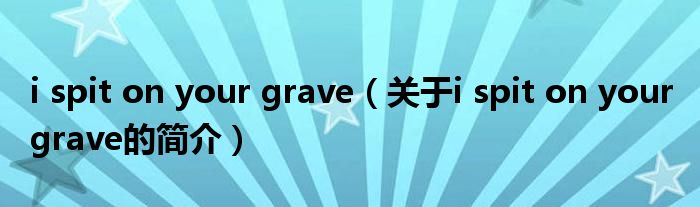 本文關于i spit on your grave的簡介就講解完畢,希望對大家有所幫助。