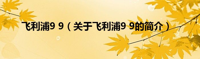 大家好,飛利浦9 9,關于飛利浦9 9的簡介很多人還不知道,現在讓我們一起來看看吧!