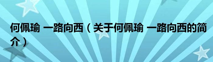 本文關(guān)于何佩瑜 一路向西的簡介就講解完畢,希望對大家有所幫助。