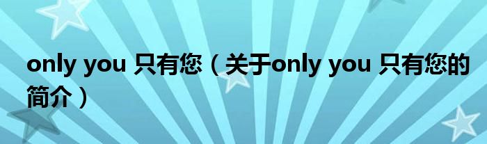 大家好,only you 只有您,關于only you 只有您的簡介很多人還不知道,現在讓我們一起來看看吧!