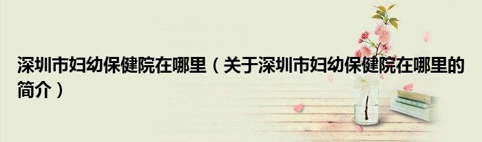 本文關于深圳市婦幼保健院在哪里的簡介就講解完畢,希望對大家有所幫助。