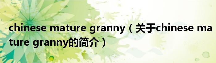 本文關于chinese mature granny的簡介就講解完畢,希望對大家有所幫助。