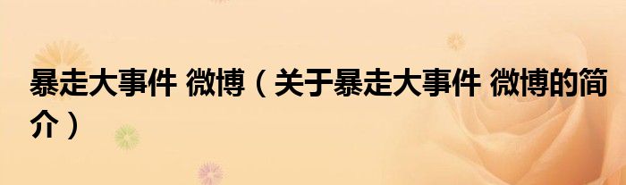 大家好,暴走大事件 微博,關于暴走大事件 微博的簡介很多人還不知道,現在讓我們一起來看看吧!