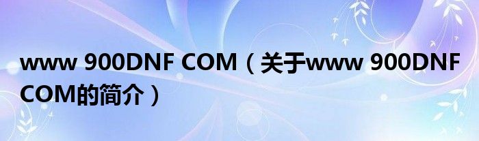 大家好,www 900DNF COM,關于www 900DNF COM的簡介很多人還不知道,現在讓我們一起來看看吧!