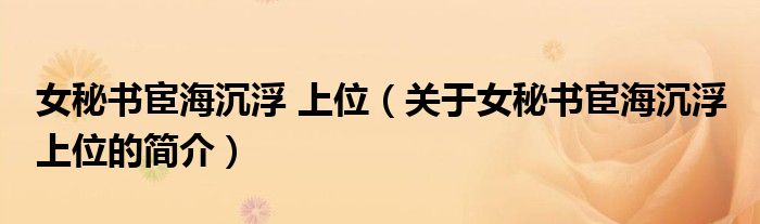 本文關(guān)于女秘書宦海沉浮 上位的簡介就講解完畢,希望對大家有所幫助。