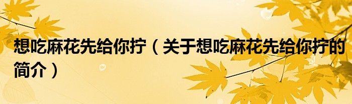 本文關(guān)于想吃麻花先給你擰的簡介就講解完畢,希望對大家有所幫助。