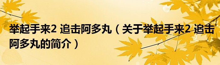 本文關于舉起手來2 追擊阿多丸的簡介就講解完畢,希望對大家有所幫助。