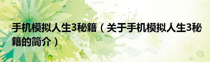 本文關于手機模擬人生3秘籍的簡介就講解完畢,希望對大家有所幫助。