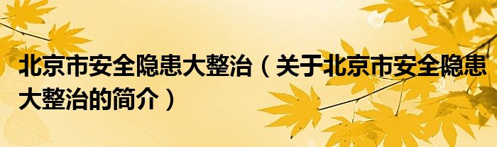 本文關于北京市安全隱患大整治的簡介就講解完畢,希望對大家有所幫助。