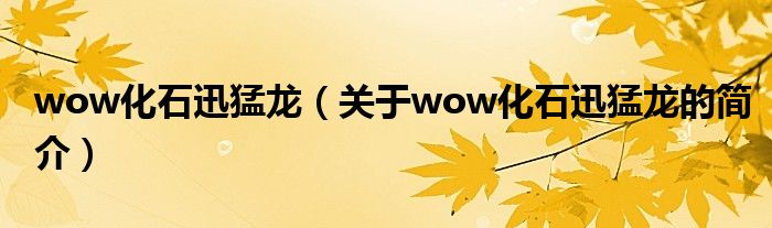大家好,wow化石迅猛龍,關(guān)于wow化石迅猛龍的簡介很多人還不知道,現(xiàn)在讓我們一起來看看吧!