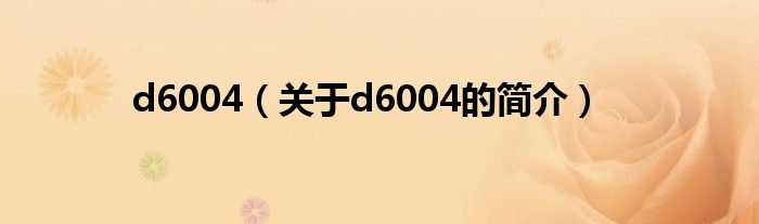 大家好,d6004,關于d6004的簡介很多人還不知道,現在讓我們一起來看看吧!