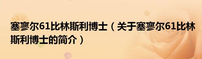大家好,塞寥爾61比林斯利博士,關于塞寥爾61比林斯利博士的簡介很多人還不知道,現在讓我們一起來看看吧!