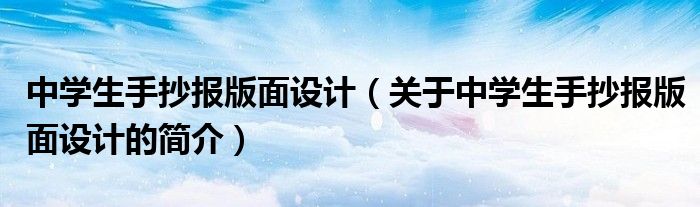 本文關于中學生手抄報版面設計的簡介就講解完畢,希望對大家有所幫助。