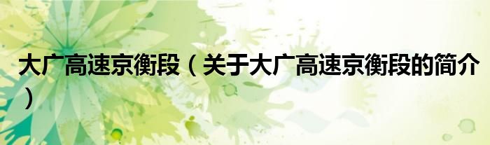 大家好,大廣高速京衡段,關(guān)于大廣高速京衡段的簡(jiǎn)介很多人還不知道,現(xiàn)在讓我們一起來看看吧!