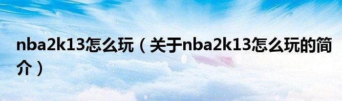 本文關于nba2k13怎么玩的簡介就講解完畢,希望對大家有所幫助。