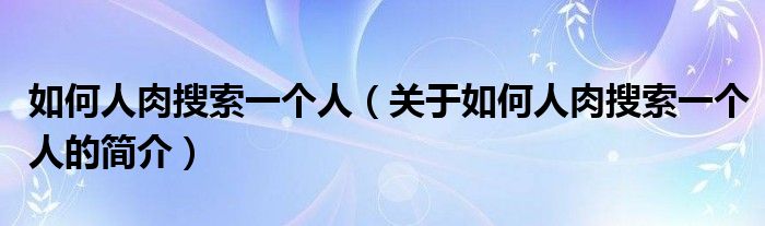 大家好,如何人肉搜索一個人,關于如何人肉搜索一個人的簡介很多人還不知道,現在讓我們一起來看看吧!