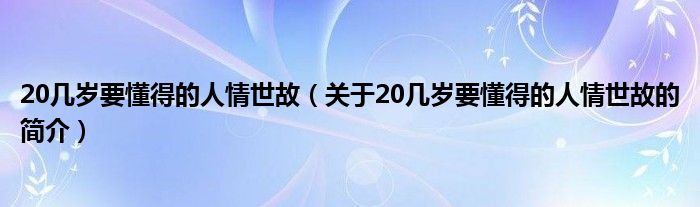 大家好,20幾歲要懂得的人情世故,關(guān)于20幾歲要懂得的人情世故的簡介很多人還不知道,現(xiàn)在讓我們一起來看看吧!