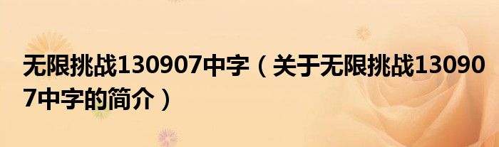 大家好,無限挑戰(zhàn)130907中字,關(guān)于無限挑戰(zhàn)130907中字的簡介很多人還不知道,現(xiàn)在讓我們一起來看看吧!