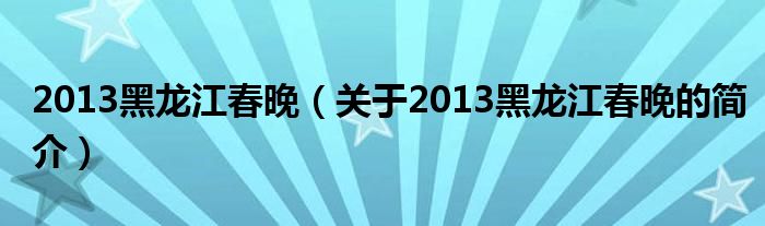 本文關(guān)于2013黑龍江春晚的簡介就講解完畢,希望對大家有所幫助。