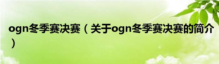 本文關(guān)于ogn冬季賽決賽的簡(jiǎn)介就講解完畢,希望對(duì)大家有所幫助。