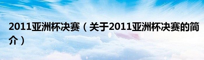 本文關于2011亞洲杯決賽的簡介就講解完畢,希望對大家有所幫助。