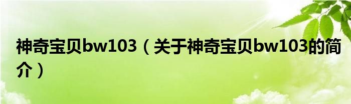 本文關于神奇寶貝bw103的簡介就講解完畢,希望對大家有所幫助。