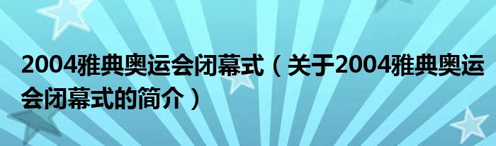 本文關于2004雅典奧運會閉幕式的簡介就講解完畢,希望對大家有所幫助。