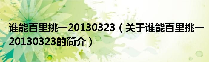 大家好,誰能百里挑一20130323,關(guān)于誰能百里挑一20130323的簡(jiǎn)介很多人還不知道,現(xiàn)在讓我們一起來看看吧!