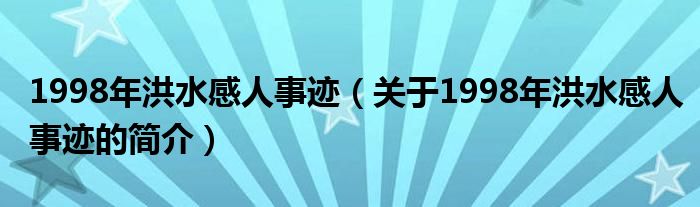 本文關于1998年洪水感人事跡的簡介就講解完畢,希望對大家有所幫助。